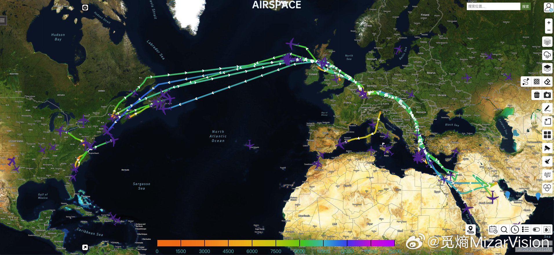 미잘비전은 설립된 지 5년 된 회사로, 서브미터급 해상도를 가진 지구관측 위성과 궤도에서 KC-135 공중급유기와 KC-46 공중급유기를 구분할 수 있는 AI 객체 인식 모델을 보유하고 있다. 이미지에는 KC-135 공중급유기 15대, KC-46 공중급유기 6대, E-3 센트리 조기경보통제기 6대가 포함되어 있다. 이는 전 세계 미 공군이 보유한 E-3의 약 31대 중 5분의 1을 한 기지에 배치한 셈이다. 또한 E-11A 전장 공중 통신기, C-130 허큘리스 수송기, C-5 갤럭시 중량 수송기가 확인됐다. 해당 항공기들은 모두 장대한 분노 작전의 핵심 전력으로, 위성으로 기록되고 웨이보에 공개되었다.
