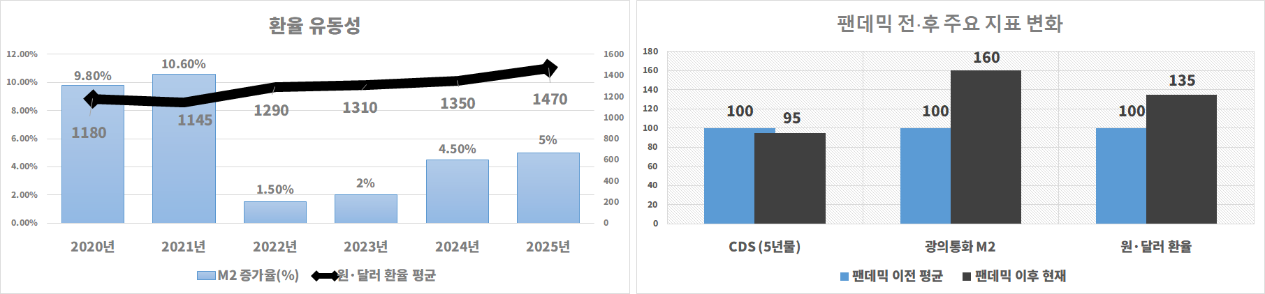 시장 안팎에서는 환율을 단순히 수급이나 심리 변수로만 보기보다, 팬데믹 이후 누적된 유동성이 어떤 경로로 분산되고 있는지를 보여주는 지표로 해석하는 시각이 늘고 있다. 신용 지표가 안정적인 상태에서 환율이 먼저 움직이고 있다는 점은, 현재의 변동성이 위기 신호라기보다 구조 전환 과정에서 나타나는 가격 조정 국면에 가깝다는 평가다.