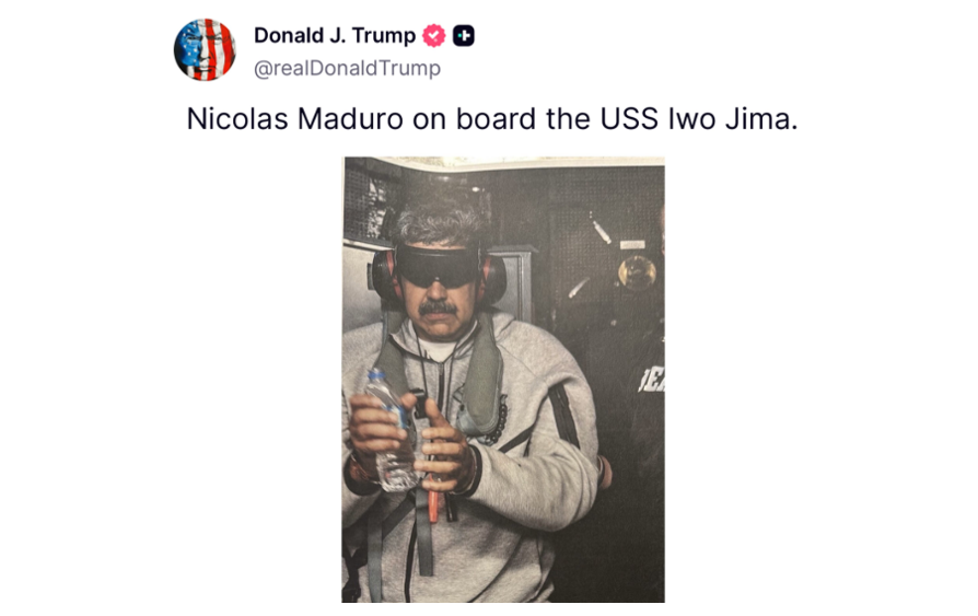 도널드 트럼프 미국 대통령은 3일(현지시간) 폭스뉴스 인터뷰와 소셜미디어를 통해 “마두로와 그의 부인은 체포됐으며 현재 미국의 통제 하에 있다”며 “미국은 베네수엘라 문제에 깊이 관여할 것”이라고 밝혔다. 트럼프 대통령에 따르면 이들은 미 해군 강습상륙함 ‘이오지마함’에 탑승한 채 뉴욕으로 압송 중이며, 도착 후 미국 법원에서 기소 절차를 밟게 될 예정이다.