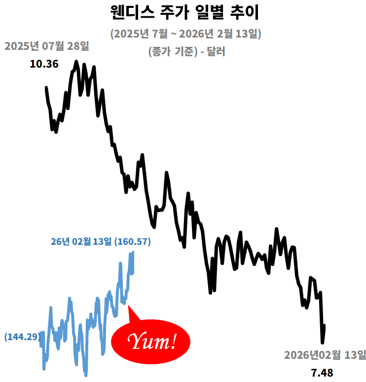 주가는 엇갈린 평가…웬디스 디레이팅, 얌 브랜드는 프리미엄 유지