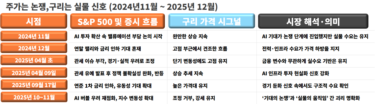 구리 가격이 말해주는 AI 투자 현실화…기대에서 설비 확장 국면으로